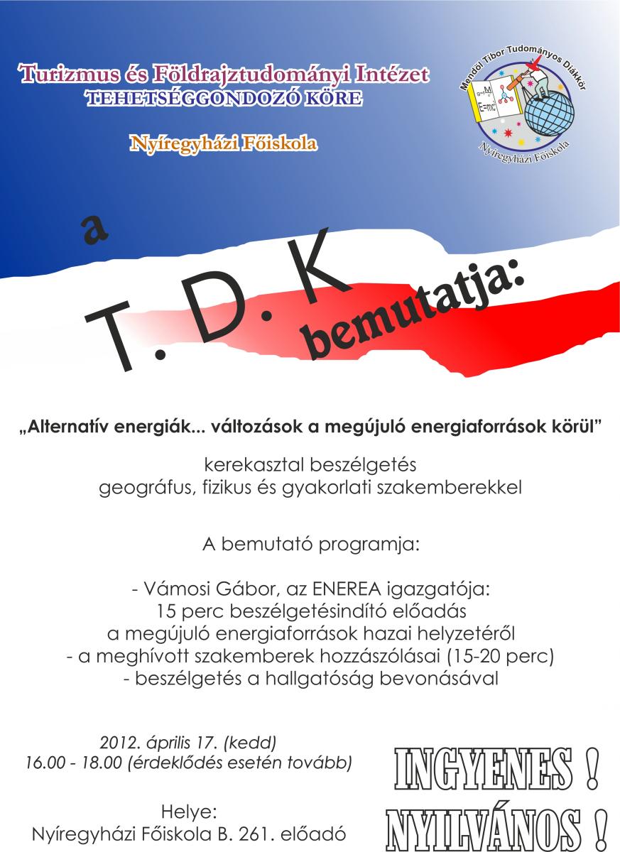 A Turizmus és Földrajztudományi Intézet Mendöl Tibor Tudományos Diákköre, a Magyar Földrajzi Társaság Nyírségi Osztálya meghív minden kedves érdeklődőt (tovább>>)