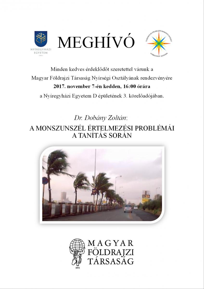 A Magyar Földrajzi Társaság Nyírségi Osztályának rendezvénye 2017. november 7-én